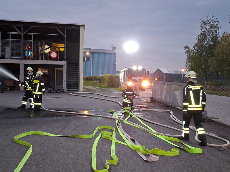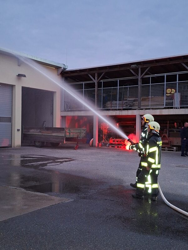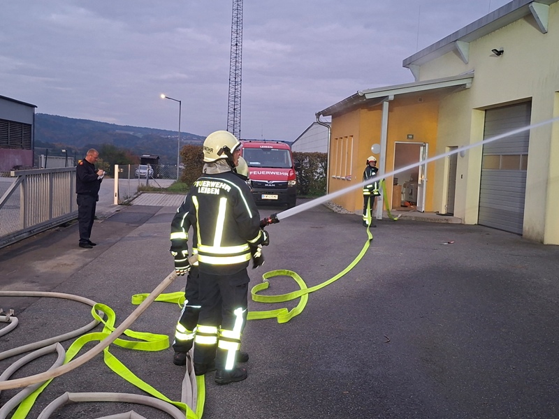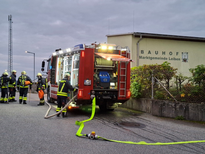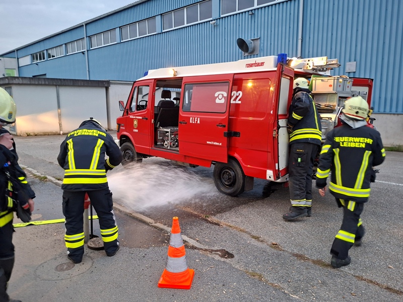 Am Freitag, den 17. Oktober 2025 um 18:00 Uhr fand unsere Abschlussübung statt. Als Übungsobjekt diente der Bauhof der Marktgemeinde Leiben. Übungsannahme war ein Brand in den Garagen und am Dachstuhl mit mindestens zwei vermissten Personen. Nach dem Eintreffen stellte die Besatzung des HLFA3 einen Atemschutztrupp (Einsatzdauer ca. 20 Minuten) zur Menschenrettung und zeitgleich wurde mit der Brandbekämpfung begonnen. Die Mannschaft des KLFA sicherte die Einsatzstelle ab und begann mit der Wasserversorgung vom Unterflurhydranten zum HLFA3/3000. Auch bei der Brandbekämpfung und Menschenrettung wurde unterstützt. Ausgearbeitet wurde diese anspruchsvolle Übung von BSB Spring Sebastian. Unter seiner Leitung wurde im Anschluss diese Übung analysiert und besprochen.