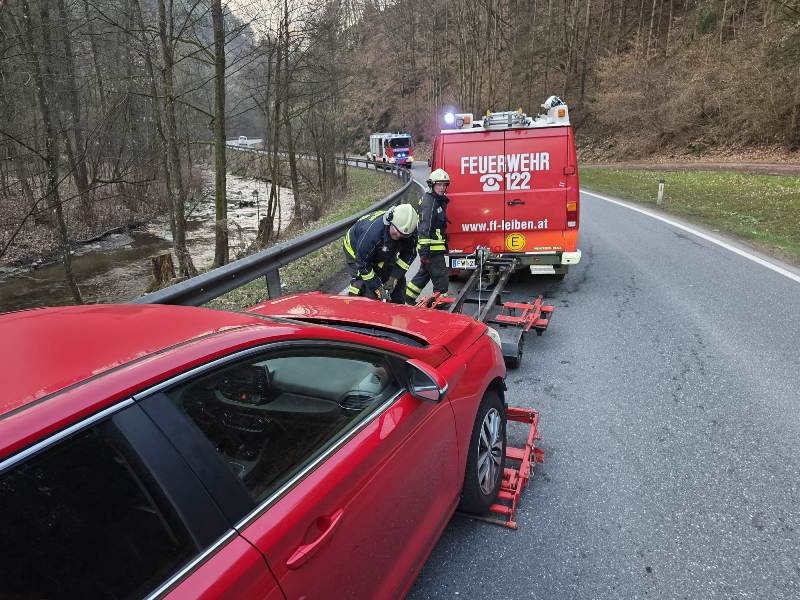 Am Freitag, den 20. März 2026 um 05:48 Uhr wurde die Freiwillige Feuerwehr Leiben von der Bereichsalarmzentrale Melk zu einer PKW-Bergung alarmiert. Alarmierungstext: T1 Bergung-PKW B216 KM 1,0 (Weitenegg->Leiben). Keine genauen Infos was passiert ist. Am Einsatzort stellte sich zum Glück heraus, dass es keine verletzten Personen gibt. Die Unfallstelle wurde abgesichert und nach der polizeilichen Unfallaufnahme der PKW mittels Abschleppachse auf einen gesicherten Platz abgestellt. Die ausgeflossenen Betriebsmittel wurden gebunden und die Fahrbahn gereinigt, danach wurde die B216 von der Polizei wieder für den Verkehr vollständig freigegeben.